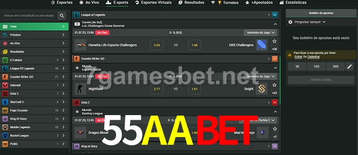 O 55AAbet oferece uma grande seleção de opções de apostas em e-sports com probabilidades competitivas